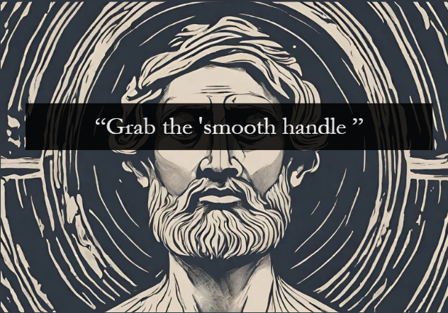 The phrase "grab the smooth handle" originates from the Stoic philosopher Epictetus, who used simple, relatable metaphors to convey profound truths about life. In his teachings, the handle of an object symbolizes how we approach challenges. A rough handle is jagged, difficult to grip, and hurts the hand, representing a perspective rooted in resistance, frustration, and unproductive emotion. In contrast, a smooth handle offers an easy, firm grip, symbolizing a perspective that is clear, constructive, and focused on what can be controlled.